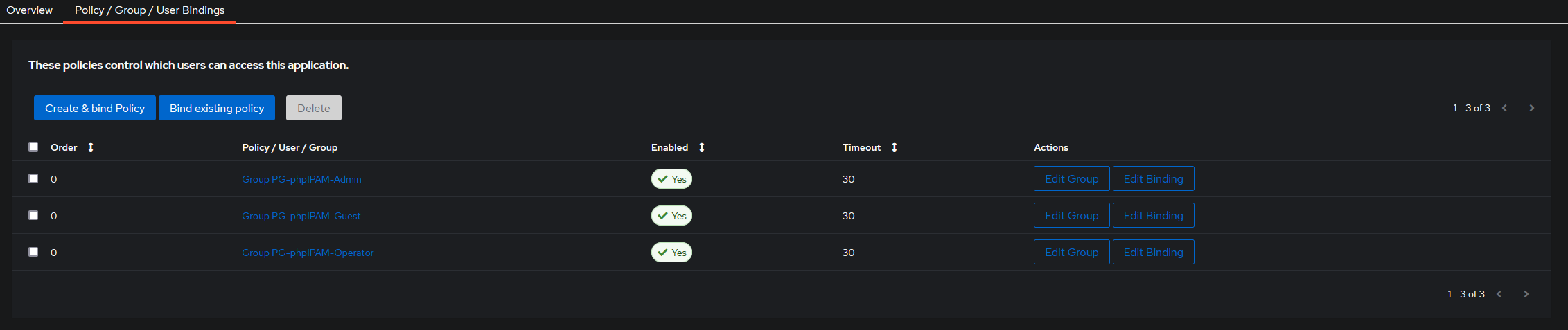 - Select Policy / Group / User Bindings